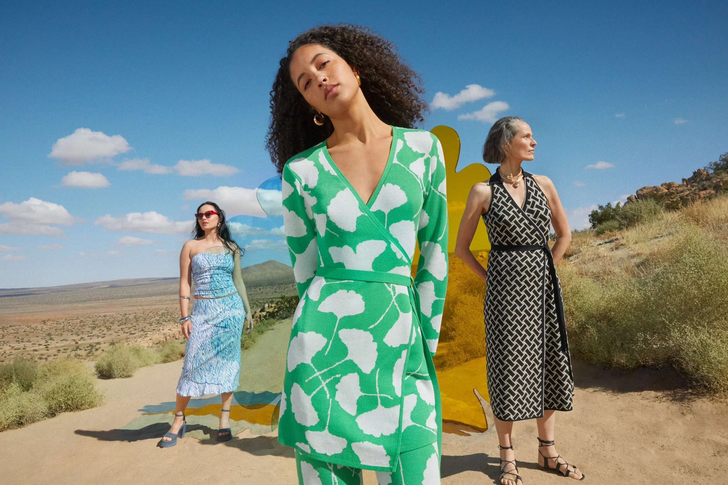 For the DVF x Target collaboration we brought a pattern playground to life in the California desert. 50 years of DVF prints and patterns, thoughtfully chosen for this collaboration, became playful graphic installations and our set for campaign stills, video, and lookbook. The collection included 4 categories: style, home, tabletop and sportswear.